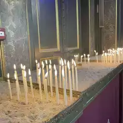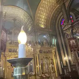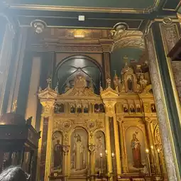 It's an Orthodox church. Inside, you'll find a small corner selling goods, candles burning, and various images and information.
