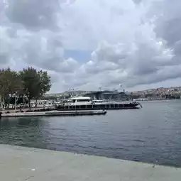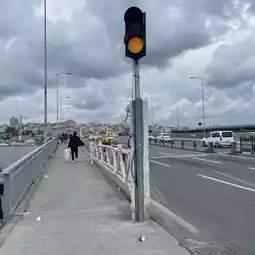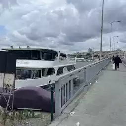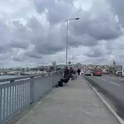 You'll pass Atatürk Bridge, which has a road next to it for cars and pedestrians. Today, many people were fishing near the bridge.