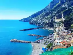 The harbor is full of colorful boats, adding to the town’s lively and welcoming vibe. Whether exploring historic sites, sampling local cuisine, or simply enjoying the sun and sea breeze, Amalfi captures the essence of the Amalfi Coast. It’s a must-visit destination in Campania for its charm, beauty, and coastal allure.