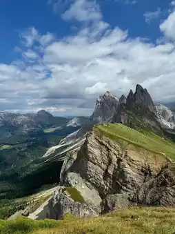 The contrast of soft meadows against sharp rock faces feels surreal, especially under the golden light of sunrise or sunset. Hikers wander along well-marked trails, stopping at cozy mountain huts for a warm meal and a quiet rest. The air is cool and clear, carrying the faint scent of grass and pine. Seceda is more than just a viewpoint; it is a moment of stillness and wonder high above the world.