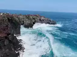 Rugged coastline formed by volcanic eruption.