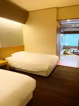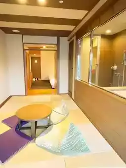 A recommended accommodation for sightseeing near Ito's tourist spots: Laforet Club Ito Onsen Yuno Niwa. The hot springs in the rooms are not cold, unlike the open-air baths. A spacious room with a separate bedroom and Japanese-style room. We stayed in a premier twin room. There is also a space in the courtyard of the building where you can enjoy a foot bath. Recommended for couples and girls' trips.