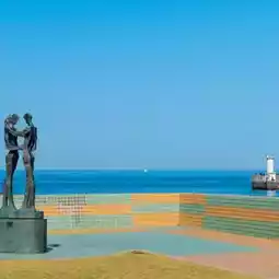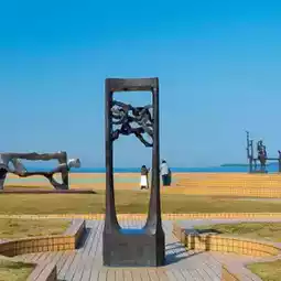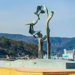 This park is maintained as a park which symbolizes the desire of the citizens of Ito City for peace and happiness. There are many works exhibited in the park, mainly the “family” collection of work by a local sculptor, Kenji Shigeoka. You can also get an unbroken view of Miura Peninsula and Hatsushima Island from the park which overlooks Ito Bay—it will sooth your soul. The park is a 15-minute walk from Ito Station.