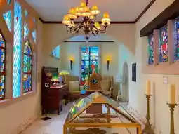 The Kawana Stained Glass Museum in Izu Kogen looks like an English manor house. The doors and decorations are actually imported from Europe. You can also listen to live pipe organ music, so you can feel Europe with your eyes and ears. On a nice day, you can sit on the terrace and enjoy tea while looking at the sea, but unfortunately it was raining when I went ☔ I'd like to go again someday. 📍Spot name: Kawana Stained Glass Museum Address: 1439-1 Kawana, Ito City, Shizuoka Prefecture 414-0044 Hours: 10:00-16:30 Ticket: 1200 yen