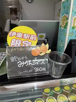 This shop is right in front of Ito Station. I was led to buy some by the "tangerine juice from the tap" POP. Wow! Tangerine juice really came out of the tap! I'll drink it until the very last second! I was having so much fun saying that, but I was surprised when I tried it! It's so rich! 🍊 It's like eating a tangerine! Really! Lol Not only tangerine juice, but also tangerine soft serve ice cream, parfaits, soft serve ice cream and drinks, and the rest area on the second floor is even equipped with Wi-Fi and power outlets. I'm so grateful! This is an introduction to a juice that you should definitely try when you get off at Ito! _______________