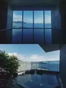 The sea view hot spring is next to the terrace. After soaking in the hot spring, you can rest and have a drink on the terrace. It's very relaxing.