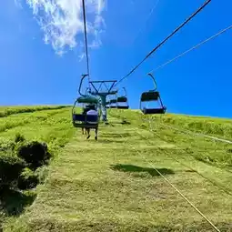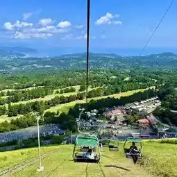 The chair lift ride to the summit is both thrilling and scenic! 🪂 Sitting above the green slopes, you feel the breeze on your face and enjoy stunning panoramic views of forests 🌲, coastline 🌊, and distant mountains ⛰️. The ride is smooth and relaxing, making it suitable for everyone—even families with kids.