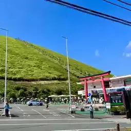 At the top, you can walk around the crater rim 🏞️, a circular trail of about 1 km. From here, you can see Itō City, Sagami Bay, and even Mount Fuji on clear days 🗻. Sunrise 🌅 and sunset 🌇 are magical, with the slopes glowing golden. Along the path, you’ll spot small shrines ⛩️ and unique geological features.