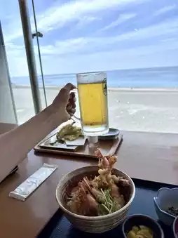 In addition to the stunning beach and seascape, there is also a snack shop next to the beach where you must try the famous seafood tempura bowl and the locally renowned fish species. The seafood is exceptionally fresh and not to be missed!