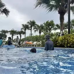 For families, there’s a kid-friendly pool with a slide that children will love, as well as a shallow pool where parents can let their little ones play safely. It’s a very family-oriented setup.