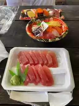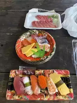 2. ยฅ1,200 Three-Piece Sushi Platter: This three-piece sushi platter (ยฅ1,200) features tuna, sea urchin, and sweet shrimp. The portions are generous, and the fish is fresh and sweet without any fishy smell! ๐ฃ The owner makes everything on site, the service is friendly, and the value is excellent. ๐ท Photo Tip: Add a neon background to your sushi platter to highlight the fish's luster and vibrant colors.