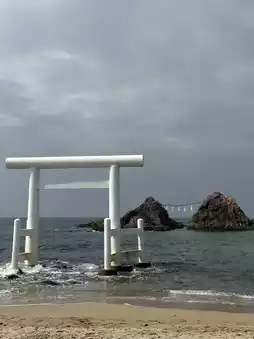 It's said that the two rocks behind the white torii gate ⛩️ resemble a couple leaning against each other, and they're connected by Shinto ropes. That's why they're called "Meotoiwa" 🥰. So sweet 😍