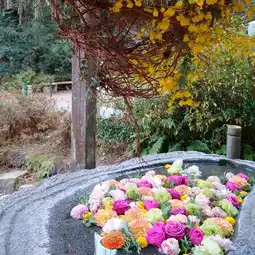 I went to Sakurai Shrine on the Itoshima Peninsula. It is said to be a sacred place for fans of Arashi and Mr. Children, and I saw many votive plaques that seemed to have been written by fans. The flower water fountain was very beautiful, and it was a magnificent shrine! If you are traveling to the Itoshima Peninsula, I definitely recommend visiting it.