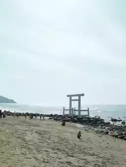 Depending on the tide, you can sometimes go all the way to the bottom of the torii gate, and sometimes you can only go as far as the beach!