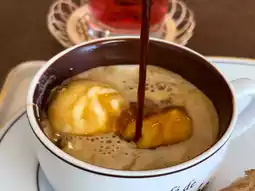 The affogato that came with it was actually made by pouring hot chocolate into a mug, covering the inside with chocolate, and then pouring ice cream on top✨