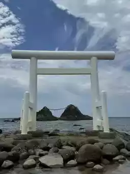 One of the must-see photos when you come to Kojima is the Sakurai Futamiura Coast of the White Torii and Couple Rock😍 Selected as "100 Choices of Japanese Beaches and 100 Choices of Japanese Sunsets"