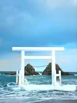 Opposite the white torii gate, there is a huge Meet and Meet Rock, which looks like a pair of lovers leaning against each other, which is really romantic. Meotoiwa is about 150 meters from the coast, and the two rocks are connected by a shimen rope. This is not only the sacred place of Sakurai Shrine, but also because successive Kuroda lords have shown great respect for it, it is also called Sakurai Futamigaura.