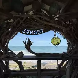 After taking pictures walked through the beach cafe sunset in a small house for people to take pictures