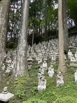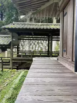 You can reach Raizan Sennyoji Temple by walking along a narrow, winding mountain road