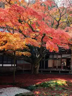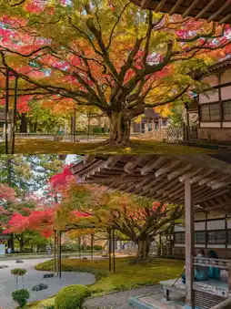 • Close-Up of Maple Leaves: Capture the details and layers of the thousand-year-old maple tree's red leaves, showcasing the fullness of autumn.