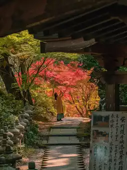 • Temple Panorama: Use the maple leaves as a foreground to photograph the temple and garden, creating a scene full of Zen.