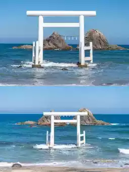 • White Torii: The white Torii facing the coast is pure and elegant, becoming one of the most representative landscapes of Futamiura.