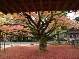 The best time to visit is usually from mid to late November during the peak autumn foliage season 🍁! The giant maple tree, ablaze with fiery red hues, is truly a sight to behold. The other trees on the temple grounds also change colors, enveloping the entire area in breathtaking autumn scenery.
