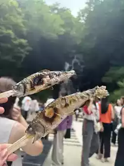 ⇨ Quite impressive! I tried fishing for ayu (sweetfish), but I couldn’t catch a single one 🥲 Luckily, they guarantee at least two fish, so I got to eat them. However, no one else caught any fish either, so I wouldn’t highly recommend this spot 🐟