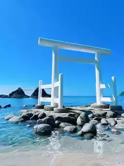 Here, accompanied by the sea breeze and the sound of waves, gazing at the silhouette of the torii gate and rocks truly evokes the feeling of "we'll keep walking together." 🥹