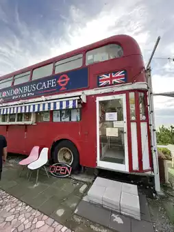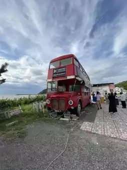 My favorite spot is the nearby "London Bus." You can get off the bus to enjoy the sea breeze, take a break, check in, and enjoy ice cream and soda—a real treat on a hot summer day.