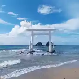On the tranquil shores of Itoshima, Fukuoka, Sakurai Futamigaura’s Couple Stones rise side by side from the sea, bound together by a sacred rope called shimenawa. Revered as a symbol of love, unity, and eternity, these twin rocks are especially breathtaking at sunset, when the sky blazes with hues of orange and gold, casting a romantic glow over the horizon. Framed by a picturesque white torii gate, the Couple Stones are more than a scenic landmark — they are a place of quiet reflection and timeless beauty, where nature and spirit intertwine in perfect harmony