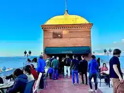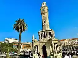 Walking from Bazza to the Aegean Sea harbor, you'll find a lively square. Capture Izmir's iconic Clock Tower here. As the third-largest city, it's busier than before, even on a Monday. Continue along the edge to reach "Asansör," a local spot. From there, enjoy a romantic sunset view overlooking Izmir harbor.