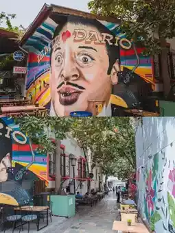 There are restaurant shops under the elevator, graffiti murals and many cute cats, which are very artistic
