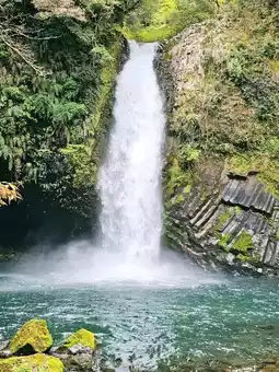 You can choose to travel to the Izu Peninsula from Tokyo by train or bus. Enjoy the scenery along the way. This waterfall is located in the mountains. It is 674 meters high. The water flows rapidly, rushing down from the mountain, forming a beautiful waterfall. Feel the power of the water from the observation deck.
