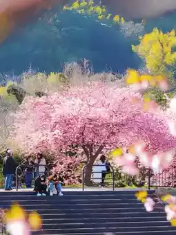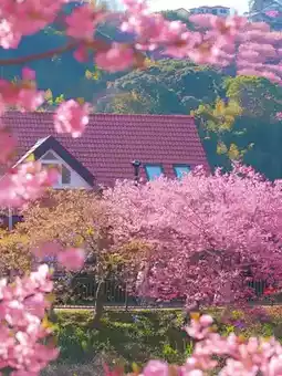 The cherry blossom season in Kawazu, Izu, is from February to March. The Kawazu Town Cherry Blossom Festival runs from February 1st to 29th. Besides cherry blossoms, hot springs are also Izu's signature attraction. Approximately 800 Kawazu cherry trees are planted along the approximately 4km stretch of the Kawazu River. Add to that the blooming rapeseed blossoms along both banks, and the interweaving of pink and yellow creates a vibrant scene that soothes even the most gloomy mood. During the day, the shoreline is dotted with street vendors, and the cherry-colored taiyaki and ice cream are a real plus. At night, the cherry blossoms, illuminated by the night lights, create stunning photos.