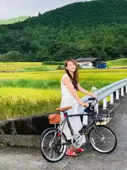 Travel episodes━━━━━━━━━━━━━━✅When and where in September in Amagi Yugashima✅What happened? Try cycling! There were a lot of slopes and it was hard, but the spectacular view was soothing☺️✅Good/Not so good⭕️ It was a stylish bicycle and looked really nice💓❌However, I'm not used to riding a bicycle, so I had a hard time riding a bicycle with handlebars and saddle at almost the same height😭Also, the bicycle basket was too stylish and I felt a little uneasy to put only my smartphone in it, so I recommend putting something big enough to not fall through the mesh of the basket, such as a bag🙌⭕️It was the season when the rice ears were shining golden, and the rice terraces were spectacular❌It was quite hard to climb the slopes⭕️Usually I stay inside Ochiairou during my stay, but I was glad to learn that this area is related to Yasushi Inoue by walking around the area this time!