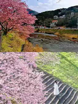Kawazu Town is the earliest place where cherry blossoms bloom. There is a 3-kilometer-long Kawazu cherry blossom promenade.
