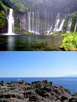 The steep cliffs are ria coasts formed by the cooling of lava flowing out during the eruption of Amagi Mountain and Omuro Mountain.