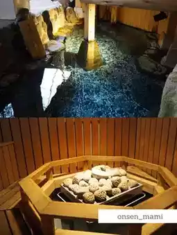 The cold bath contains river water and is very cold 😇 (I don't like cold water baths, so I could only get up to my feet...)