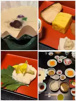 Meals were served in the room at scheduled times, with staff arriving to set up. The most amusing part? If breakfast was at 8:30 AM, the futon would be tidied up by 8:00 AM. The dinner was exceptionally delicious—another feast to the brim!