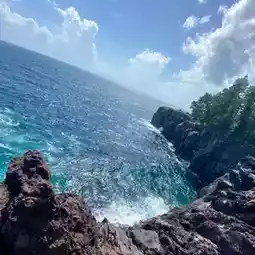 The coast was formed by lava that flowed out when Mt. Omuro erupted about 4000 years ago. #Historic site