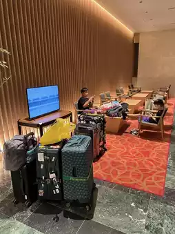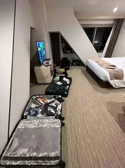 The room is very big. There is room for a family of five with 5 suitcases open😂