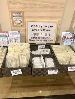 The amenities are located next to the check-in counter, so you just need to take what you need!