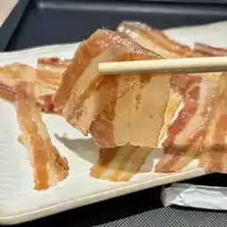 Sweet and spicy pork belly is seared to enhance its flavor, making it the perfect snack. It has more fat than beef jerky, but the flavor is excellent.