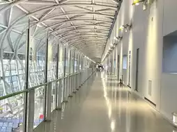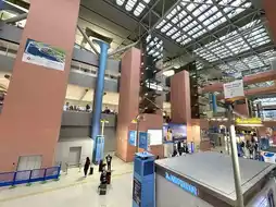 The airport is spacious with many shops, restaurants, and souvenir shops. Outside the building, there are transportation connections to various tourist attractions, such as buses, trains, and taxis.