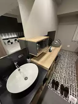 The room remains clean and spacious, and I particularly love the separate toilet and bathtub setup. The shampoo and conditioner have a pleasant fragrance. The hairdryer is powerful and comes from a well-known straightener brand.