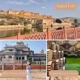 🏰 The first city is "Jaipur" or the Pink City. From what I have observed, the houses here are painted in pink brick. This city has very beautiful architecture. The work is detailed and the patterns are very beautiful.