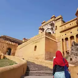 Amber Fort is a 30-minute drive east of Jaipur on the road to Delhi. Take a public bus to the fort's parking lot, about a 15-minute walk from the entrance. The fort is open daily. Visitors will have to pay an additional fee if they want to bring a camera into the fortress. Rent an audio guide or hire a local guide, who can provide information about the fort's history and interesting places that visitors are likely to miss. See snake charmers and musicians in traditional costumes. Visitors have two ways to approach Amber fortress: one is to ride the royal elephants and the other is to walk through the stone paths. However, elephant riding is often chosen by most tourists, helping you feel more clearly the majestic beauty of the sky, the city and the enchanting scenery of Maotha Lake.#freehotelstay