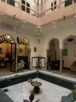 When you come to Jaipur, how can you stay in a normal hotel? You have to try sleeping in an Indian feel in Rajasthan. The hotel is located a few hundred meters away from Hawa Mahal. It is right behind Hawa Mahal. The history says that it is an old tycoon's house that has been renovated. It has a sense of magic, oldness, and beauty.