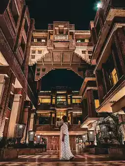 The design was inspired by traditional Rajasthani havelis (mansions), and it's a luxury hotel with a distinctive red brick exterior that looks like an ancient ruin 🥹